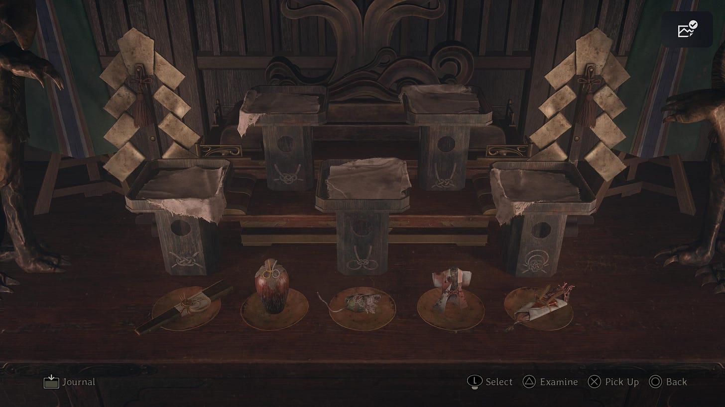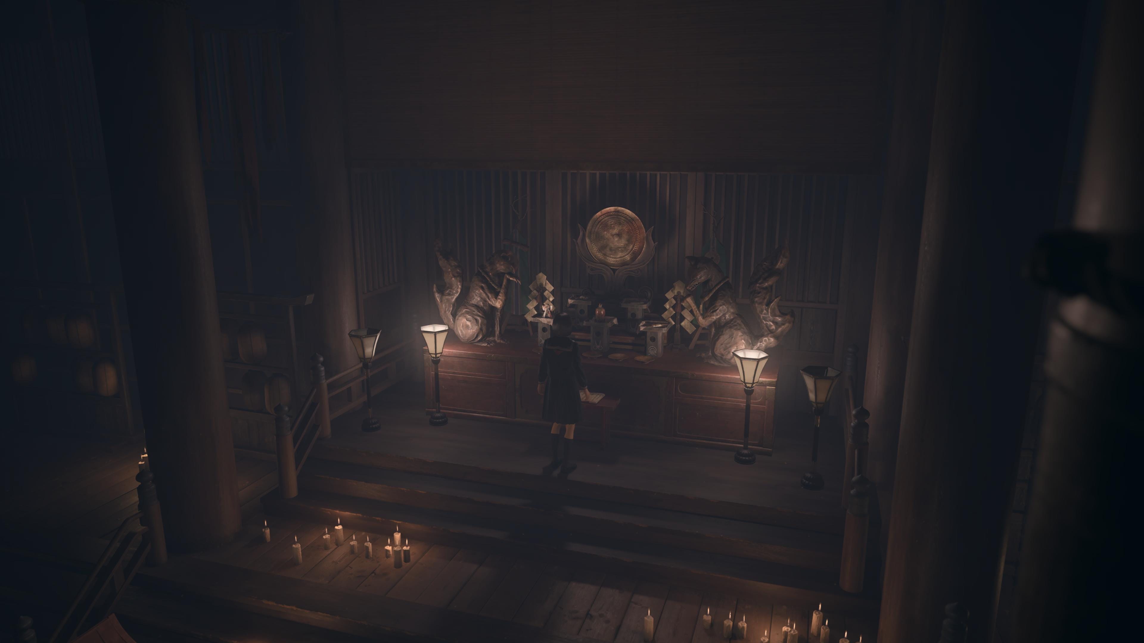 Unsurprisingly, there are a number of altars, as is the case at major shrines where a number of main deities will be enshrined, with a number of smaller ones as well. In fact one of the first shrine puzzles is set at an altar with Hinako having to use her knowledge to match each offering to its tray using the knots incoroperated with each offering (including what seems like the corpse of a rat… Nooooo.)