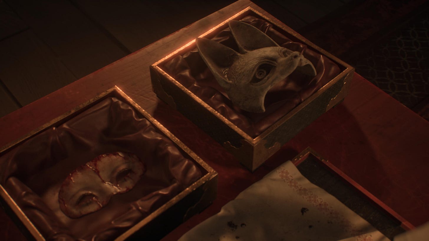 The artbook and the game introduce several variants on the mon, a Japanese crest use to represent families, societies and shogunates. I’m not an expert in this in particular but it looks to be both the clan crest but also a reference to Silent Hill 2 and the Seal of Metatron (which is triangular) but also the Halo of the Sun found in Silent Hill 3 which serves as the sigil of The Order.