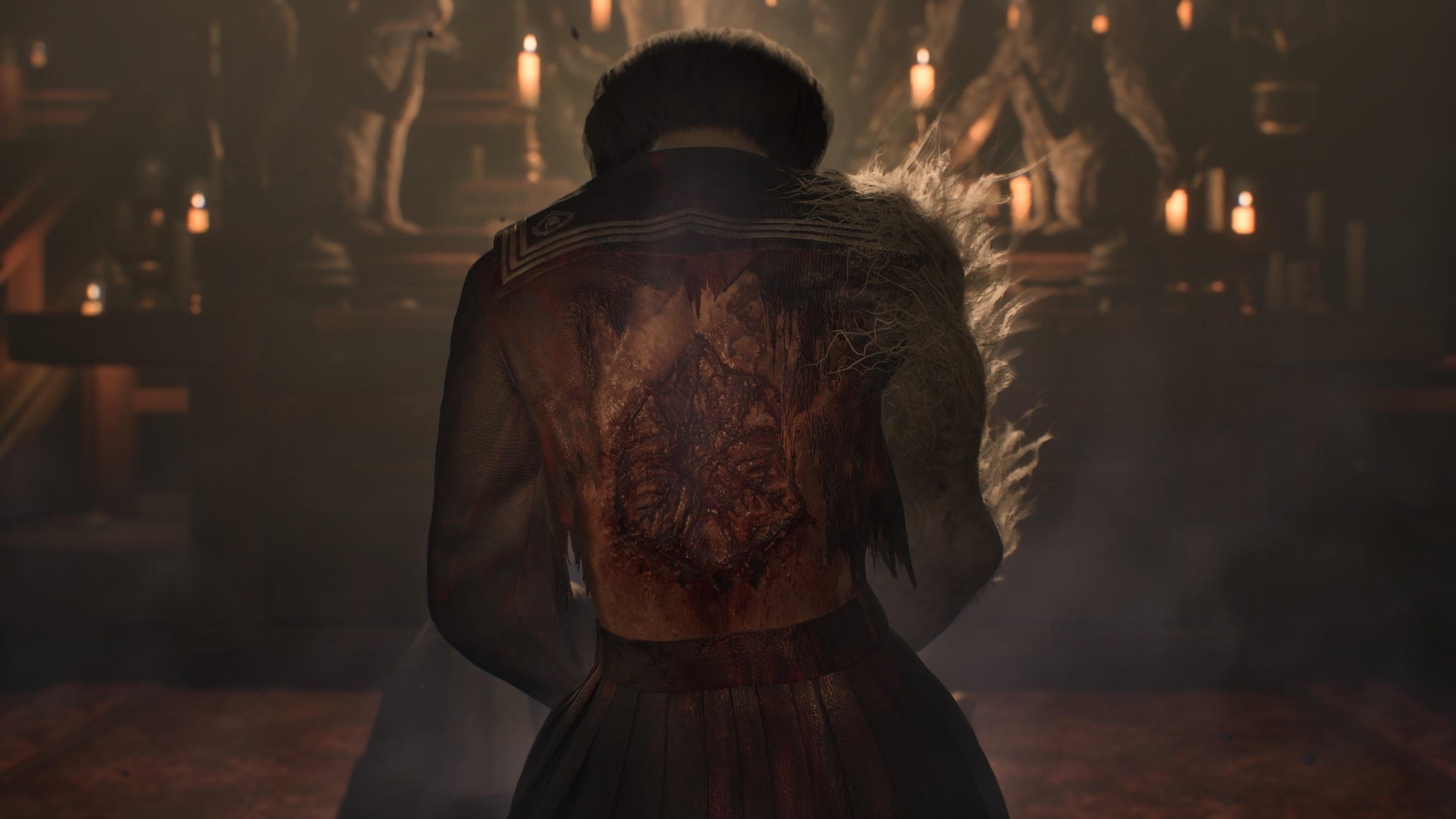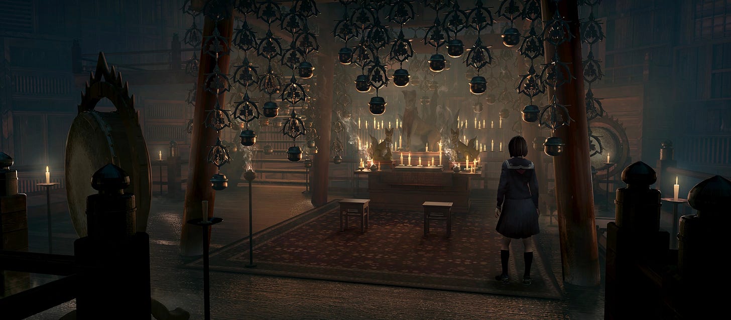 Silent Hill f did something different, it made the majority of the map focus on Ebisugaoka whilst the Otherworld is the self-contained Dark Shrine, a grimy, bloody shadow of a Shinto jinja that appeared to exist in its own space that Hinako could access each time she passed out or fell asleep.
